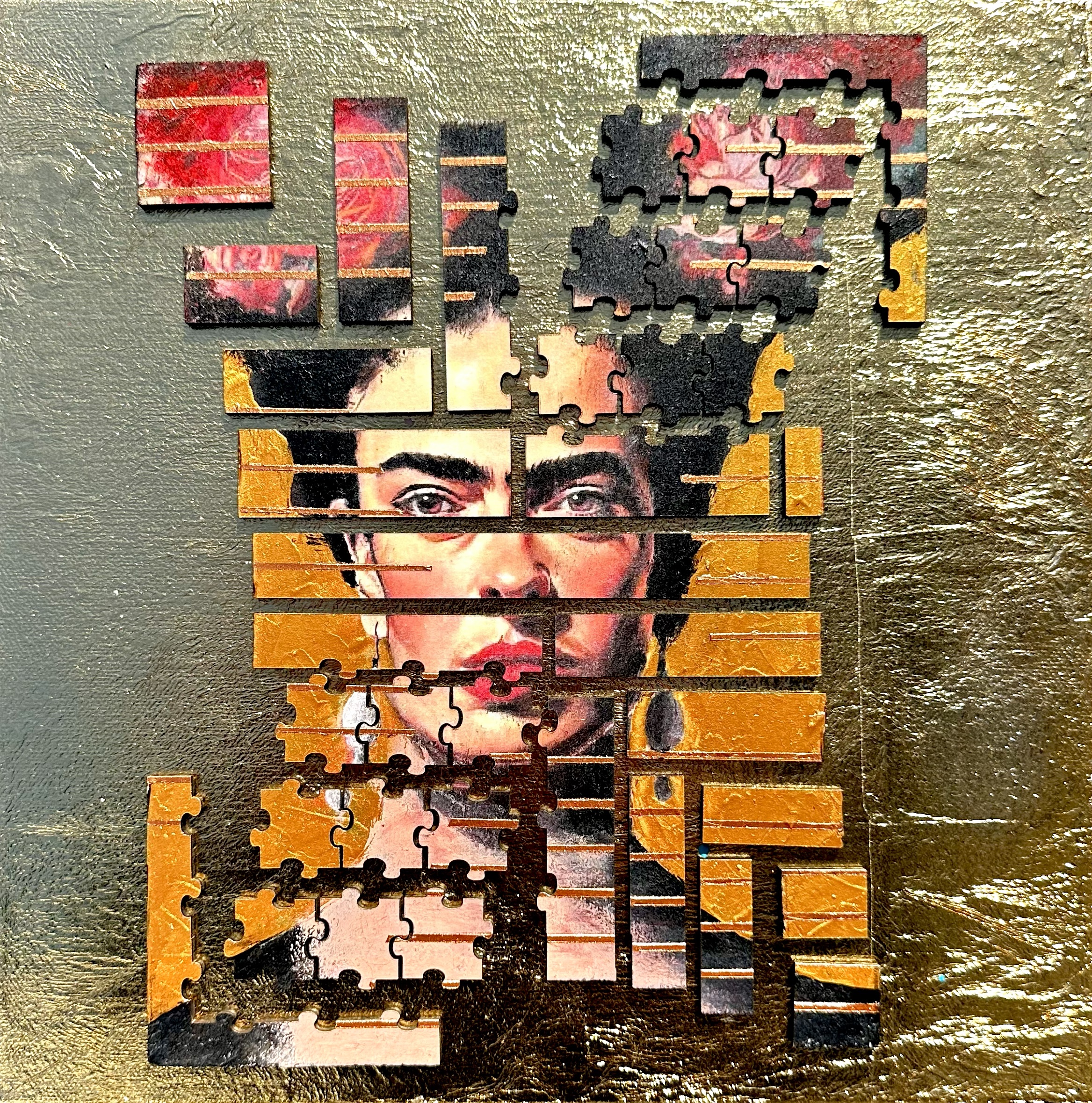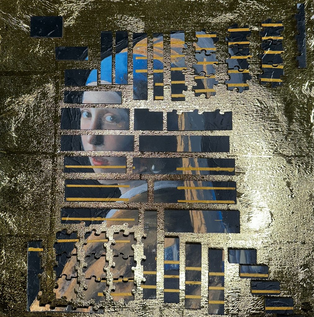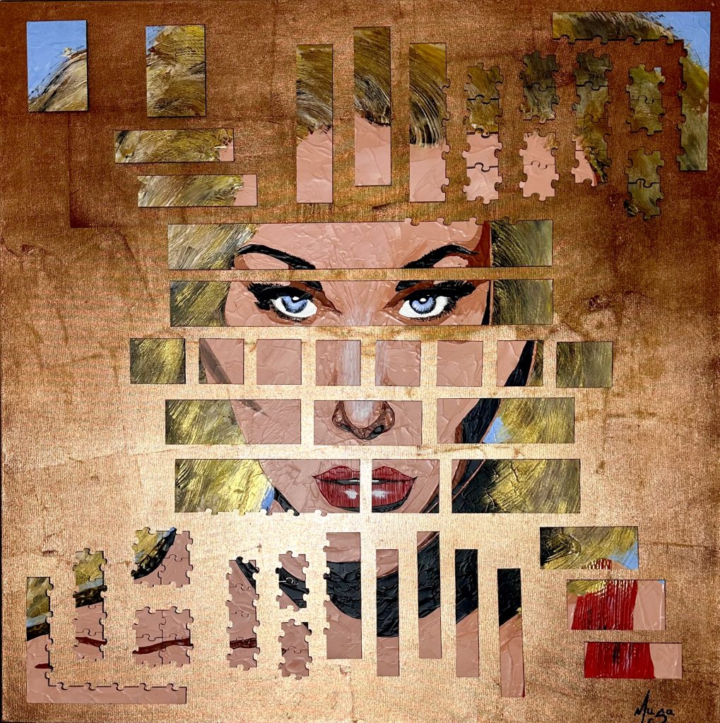 Die individuell gestalteten Motive werden mit Acrylfarben und Spachteltechnik auf eine Platte gemalt. Das Bild wird anschließend zerschnitten und die einzelnen Segmente auf einer mit Metallfolie veredelten Leinwand puzzleartig positioniert. Durch diese innovative Technik entsteht ein einzigartiges Design, das dem Werk eine besondere Tiefe und Exklusivität verleiht. Somit ist jedes Werk ist ein unverwechselbares Unikat.